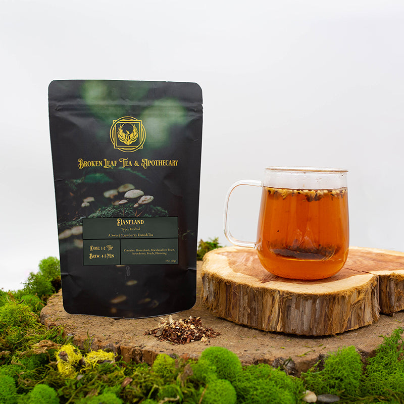 Ingredients: Honeybush, marshmallow root, strawberry, peach pieces, strawberry flavor, sweetbread flavor